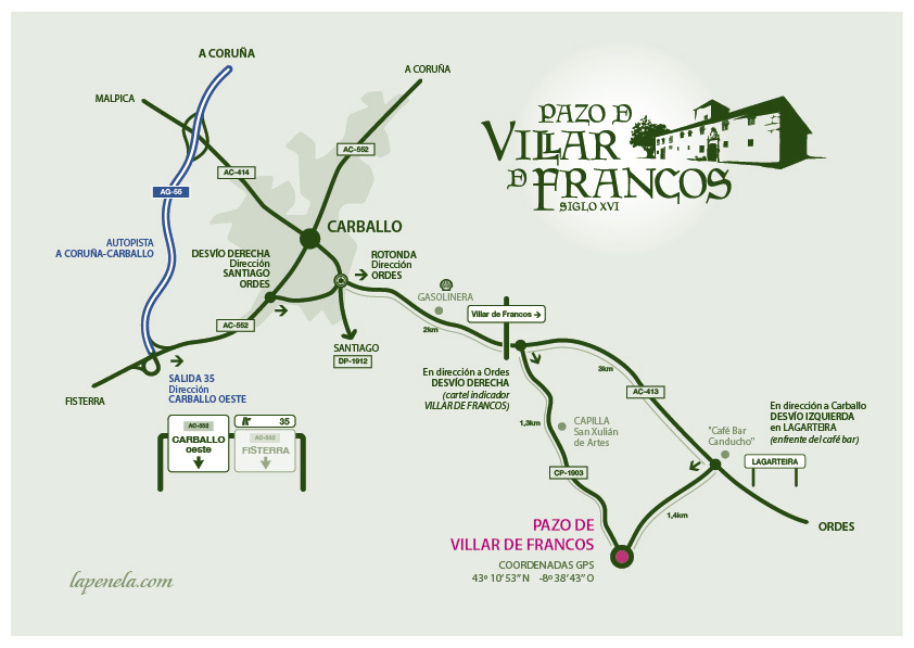 El Pazo de Villar de Francos se pone a vuestra total y exclusiva disponibilidad, para que podáis disfrutar de un espacio inolvidable con vuestros invitados. La localización -a un paso de A Coruña, Carballo y Órdenes (Ordes)- y el paisaje de cuento, presentan infinitas posibilidades para realizar el cóctel, la entrada de los novios, la realización de los reportajes fotográficos y de vídeo. Los cuidados jardines de película son un claro ejemplo de buen gusto repletos de rincones mágicos.